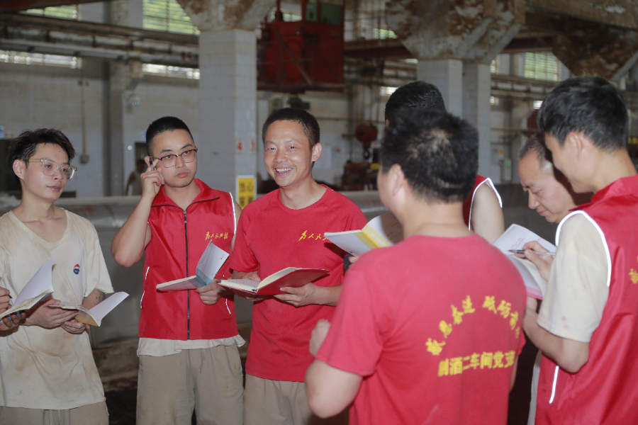于是,酒甑旁、窖池边、休息室……大家围坐在一起,“互动式”提问,“开放式”教学,班组就是课堂,晾堂就是讲台,让党课更接地气,党员的参与感更高,党课覆盖面更广,学习氛围更加浓厚。