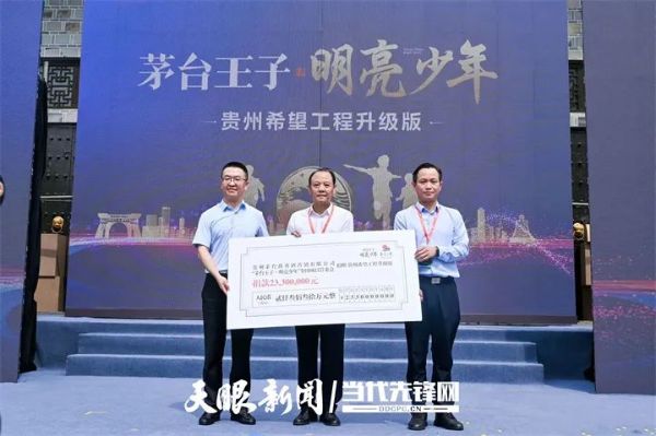 6月23日,“茅台王子·明亮少年”捐赠仪式在贵阳市修文县举行,贵州茅台酱香酒营销有限公司、“茅台王子·明亮少年”全国项目管委会捐赠2330万元善款助力贵州希望工程升级版,标志着贵州希望工程升级版启动以来,募集资金突破2亿元。