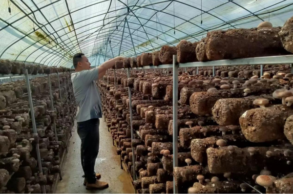 在长坝村食用菌园区,只见一座座黑色大棚整齐地排列着。大棚内,菌棒上一个个香菇肉厚圆整、硕大紧实,一朵挨着一朵。35岁的菇农韩令穿梭在菌架间,手脚麻利地采摘成熟的香菇,脸上喜气洋洋,透着丰收的愉悦,“今年预计收入10万元,可比去年增收4万元,我打算将这个产业一直发展下去。”