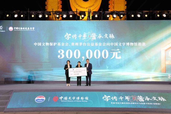 活动中,中国书法家协会篆书委员会副主任、安阳市书协名誉主席刘颜涛分别向茅台酱香酒公司和中国文字博物馆捐赠自己的书法作品。中国文物保护基金会常务副秘书长初迎霞、贵州茅台公益基金会副理事长王振耀代表中国文物保护基金会和贵州茅台公益基金会向中国文字博物馆捐赠30万元,用作中国文字博物馆的文物保护和修缮。