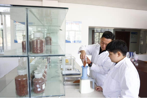 从“科研人”到“新农人”,陈玉彬的身份增加了,伙伴也增加了。“公司目前在现有酒用原料育种研发团队的基础上,又引进了20余名硕博人才组建成专家库。近年来累计开展科研项目19项,取得‘红缨子1619’‘台糯9号’两项植物新品种保护权,育成不同海拔区域的早熟抗病宜机酒用高粱新品系2个,青糯、黑糯、红糯等特异性新品系9个,这些成果都让我们在持续强化茅台种业科技自主创新的路上,走得更坚定、更有信心了。”陈玉彬笑着说。