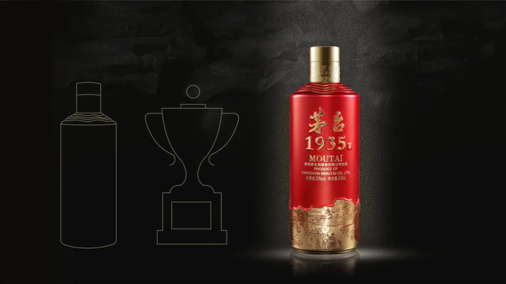 茅台1935酒取形于展览会的酒瓶形奖杯,象征着茅台发展的里程碑,将茅台的历史、人文精神和文化基因融入了其中。
