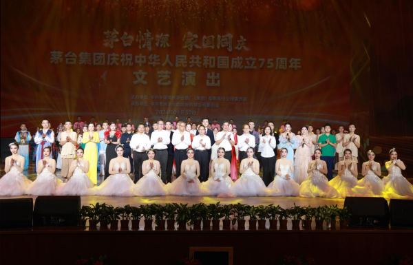 共襄盛典,同贺华诞。近日,一场以“茅台情深·家国同庆”为主题的文艺演出在茅台会议中心上演。演出紧密围绕茅台的初心使命、发展历程、精湛工艺以及未来愿景,匠心独运地编织了“国之崛起 恢弘史诗”“民族刚毅脊梁 豪迈奋进担当”“筑就璀璨未来 星耀锦绣中华”三大篇章,多维度展现茅台人的拳拳爱国之心与对祖国繁荣昌盛的深切祝愿。