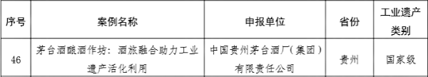 近日,国家文物局、工业和信息化部公布“共和国印记”见证物和工业遗产保护利用典型案例名单,确定了100项“共和国印记”见证物和77项工业遗产保护利用典型案例,“茅台酒酿酒作坊:酒旅融合助力工业遗产活化利用”入选工业遗产保护利用典型案例。