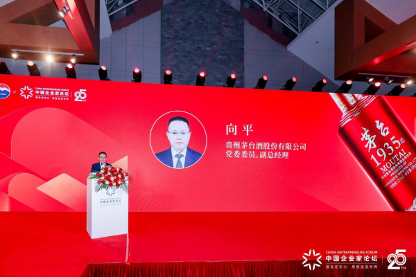 贵州茅台酒股份有限公司党委委员、副总经理向平在致辞时向参加论坛及出席晚宴的企业家们表示致敬。他表示,茅台1935正式成为亚布力论坛TOP合作伙伴,既是对商业本源的致敬,也是对创新精神的赋能,更是对共绘蓝图的厚德共践,期待与亚布力的各位企业家共同续写中国品牌的传奇。