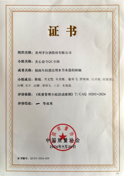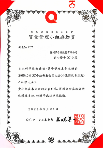 一直以来,茅台都非常重视QC活动的开展和成果转化应用,进一步激发了QC小组活动的活力。“齐心奋斗”QC小组和他们取得的丰硕成果只是茅台众多优秀QC小组的缩影,他们的一系列小改小革、小发明、小创造,有效促进了生产技术的创新突破和生产质量提升,为推动公司质量管理水平再上新台阶注入了源源不断的动力。