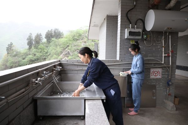 陈锐(左)和肖文雯(右)正在使用节水器