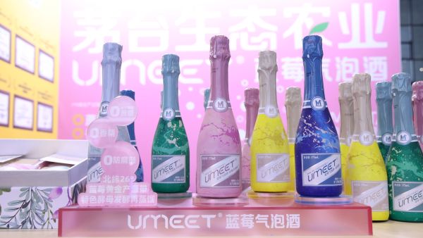 在展会上,茅台生态农业公司UMEET蓝莓气泡酒成为现场焦点。该产品以“蓝莓果香+微醺气泡”的复合口感突破传统酒饮边界,搭配国风泼墨美学,精准触达年轻消费群体与多元场景需求。