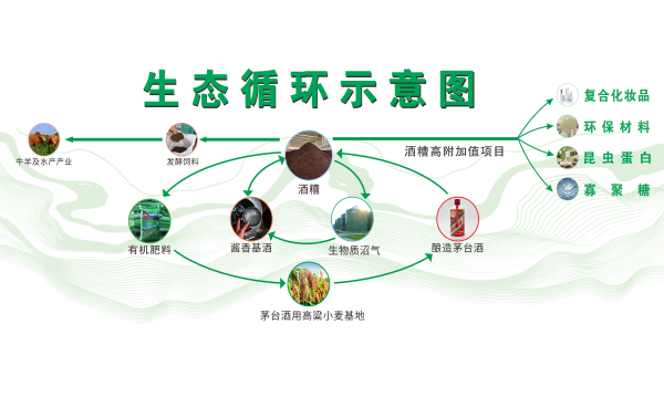 而对酒糟的妙用远不止于此,茅台循环产投公司践行酒糟“多级利用、吃干榨尽”理念,一级利用生产基酒,二级利用转化为肥料、饲料和生物质沼气,三级利用沼渣、废水制备液肥、优质碳源和低端固态肥。实现了资源的全链条和深度循环利用,让酒糟的跨界价值得到了充分释放。