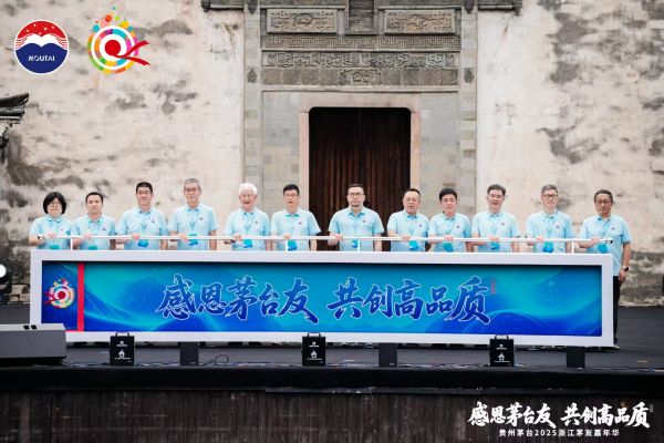 启动仪式上,领导嘉宾与茅友代表一同上台触动启动装置,正式拉开了贵州茅台2025浙江茅友嘉年华的序幕。