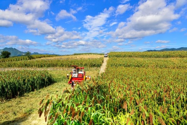 高粱丰收,粮农笑开颜
