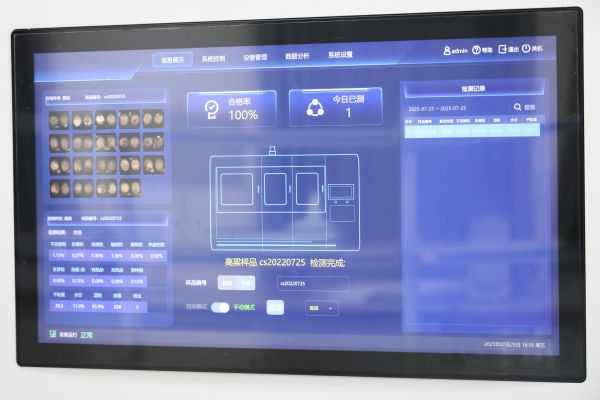 彭海文正在自动化检测平台查看高粱质量