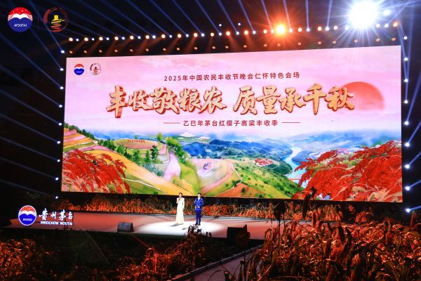 晚会现场,丰富多彩的文艺表演浸润乡土情怀与文化底蕴,为丰收季注入别样活力。开场表演《舞丰年·鼓乐山河》,以高亢嘹亮的唢呐为引,芦笙与鼓乐交织,让现场嘉宾在美轮美奂的红高粱田与梯田风光中,沉浸式感受山河间的丰年盛景;歌曲《月亮河》,带领现场嘉宾走进赤水河的月影星光,聆听这条黔北母亲河最动人的呢喃;《高粱红透九月九》以激昂的旋律,唱出九月九高粱红透时的丰收喜悦与乡土豪情;村T走秀《穗浪梯田》扎根乡土、承载亲情,将传统与现代、自然与时尚完美融合,展现希望在代代人肩头接力传递的力量;乙巳年茅台红缨子高粱丰收季晚会主题曲《红彤彤》,以敬丰收、敬岁月、敬天地情怀,传递丰收的炽热与欢腾;串烧《声合四海》以歌为桥,唱响世界共饮的和声,让不同文明在举杯瞬间读懂中国酒文化的热情与敬意;此外,粮农、茅台员工及经销商代表分享与茅台的故事,并倾情合唱《一路生花》,体现出一粒高粱、一滴美酒、一瓶佳酿背后的携手奋进和磅礴信念……活动在一曲悠扬明快的歌曲《和美乡村等你来》中圆满落下帷幕,让这场充满温度的相聚,在余韵悠长中定格成难忘的瞬间。