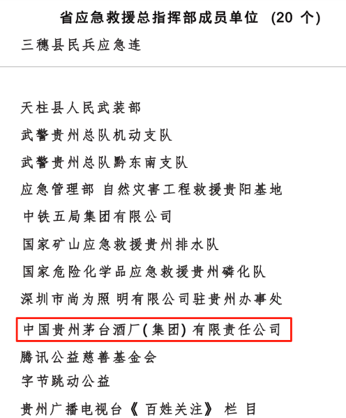 近日,中共贵州省委、贵州省人民政府发布了《关于对2025年全省抢险救灾表现突出集体和个人予以表扬的通报》,茅台集团凭借在抢险救灾工作中的突出表现,入选抢险救灾表现突出集体名单。这一荣誉不仅是对茅台集团在灾害面前勇于担当的高度认可,更是对企业社会责任践行的有力见证。