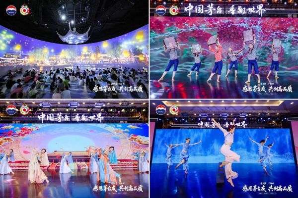 随着夜幕降临,一场备受期待的茅友晚宴在流光溢彩、灯火辉煌的现场正式启幕,精彩纷呈的节目轮番上演,国乐演奏婉转动听,古筝、琵琶等传统乐器的悠扬旋律在空气中回荡,令人陶醉;舞蹈表演则轻盈飘逸,舞者们身着华服,翩翩起舞,展现出中华文化的独特魅力。嘉宾们沉浸在这场视听盛宴中,彼此间交流着对茅台的热爱与对文化的感悟。