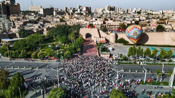 茅友们步入喀什古城