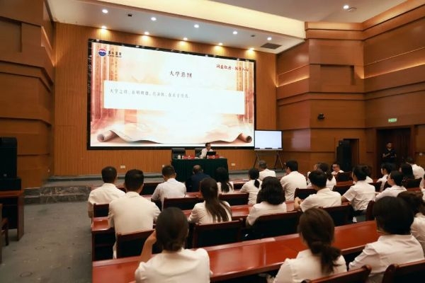 讲授中,刘长焕从《大学》“本末终始”与阳明心学“知行合一”的呼应中,为大家勾勒出“修身为本、发展为末”的根本逻辑。讲授既深透经典经义,又贴合茅台实际和《茅台玖章》内容,让大家学习了“止、定、静、安、虑、得”的修身之道,更明晰了“立志、勤学、改过、责善”如何与“格致诚正”相融共促。