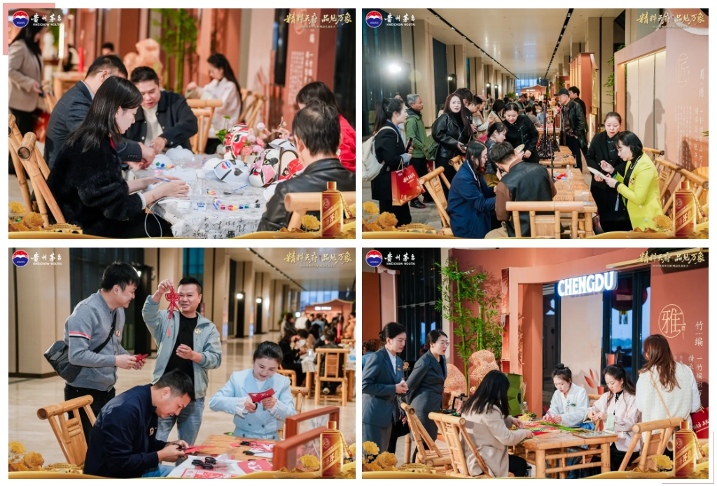 活动还精心打造了沉浸式互动体验空间,设置茅台品牌文化墙、贵州茅台酒产品展示区、产品闻香互动区、非遗展示互动区等,呈现银丝花、蜀绣、竹编等非遗作品及茅台酒系列产品,展示茅台“时空法”酿造工艺智慧,营造“精艺成酿 品宴雅章”的沉浸式文化体验氛围。