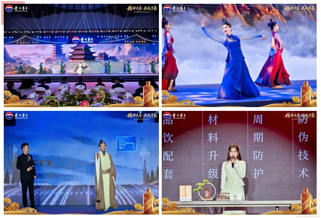 活动通过一场精心编排的沉浸式剧目,以“从精品成都到精品茅台”为主线,开启了一段跨越时空的文化对话。首幕以《醉宴》群舞展现成都三千年文脉的生生不息;第二幕通过与“穿越文人”的对话,凸显成都“传承与创新”的城市气质;第三幕以茅台酿造工艺的“变与不变”为核心,阐释了茅台对传统工艺的坚守与现代科技的创新融合;终幕上茅台文化品饮师带领嘉宾从“观、闻、尝、格”四步,全方位地感受贵州茅台酒(精品)的品质与匠心,通过品饮环节,将活动升华至“器以载道,礼序自成”的文化境界。整场剧目巧妙融合成都地域特色与茅台文化精髓,让嘉宾在艺术享受中感悟茅台酒作为文化载体的独特魅力。