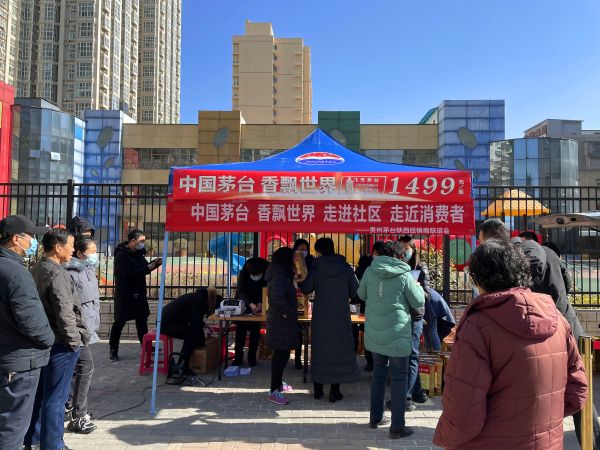 而在西北市场,陕西省西安市小寨东路,茅台酒销售公司陕西省区驻场服务的经销单位直接将销售点摆进了小区,在严格做好防疫措施的前提下,积极开展销售服务活动,现场300多人参加活动,售酒600多瓶。