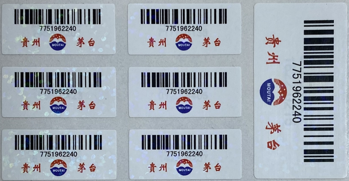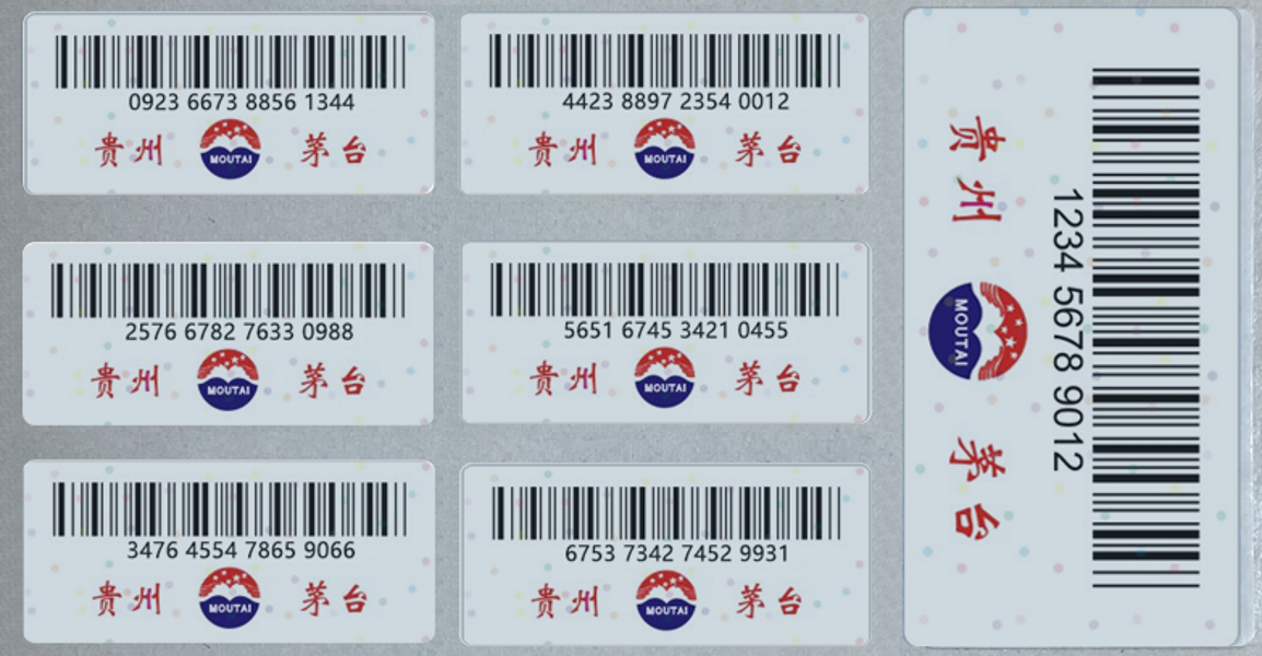 为全面实现茅台酒“一瓶一码”物流溯源需求,自2022年1月24日起,飞天53度500ml贵州茅台酒启用了新版物流码标签。与旧版物流码标签(瓶码箱码相同,均为10位)相比,箱码升级为12位,瓶码升级为16位、为一瓶一码,箱码对应绑定箱内所有瓶码,以上信息在出厂前均已记入系统。至销售终端,销售人员通过扫码设备可识读茅台酒箱、瓶绑定信息。