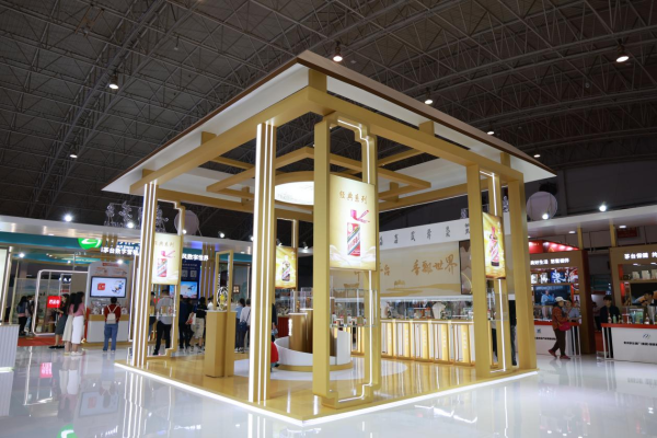 茅台展厅位于北京·中国国际展览中心朝阳馆8号展馆,展位面积360平方米。展厅深度参考了贵州传统古建特色,以雕梁画栋,飞檐翘角的造型构建了展厅的外貌,用连廊结构串联起展厅的内院,湘叶黄的主色调搭配茅台红,从古到今的视觉体系中呈现着文化的碰撞,在回廊里,品味茅台历史的韵味。