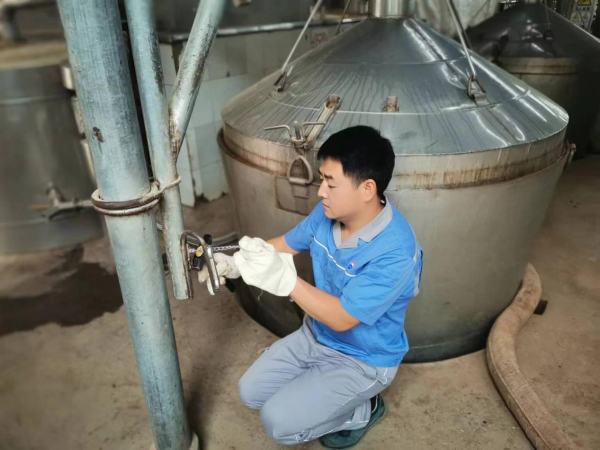 针对维修过程中遇到的难点、痛点,徐升双号召员工把找问题、提问题、改问题贯穿始终,带领班组开展“金点子”活动,激励员工进行大胆创新和优化改进。研发曲粉设备物联网远程控制系统,利用终端对曲粉设备、数据进行监控,提高工作效率;为制酒16车间甑区加装吊杆防滑链条,防止吊杆脱落,确保员工安全;学习制酒15车间谷壳清蒸系统的维护保养,对设备中安装的振动筛进行合理化建议改装,便于振动筛的拆卸清理与安装……徐升双以实际行动带动员工开动脑筋、创新创效,让“金点子”变成促进维修工作更好开展的“金钥匙”。