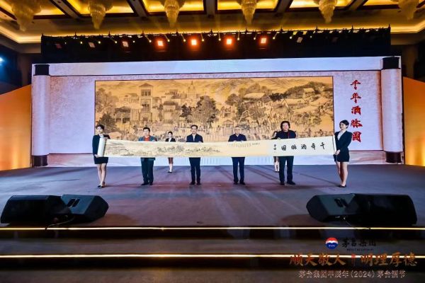 该画作以历史为轴,从古至今描绘了20余幅场景,从仡佬族先民濮人发明并传承酿酒技艺,到汉武帝品枸酱,赞其“甘美之”;从唐宋名家诗酒流连,到清代郑珍“盐登赤虺河”;从巴拿马万国博览会的灵机一掷,到如今香飘世界的多产业大融合发展。