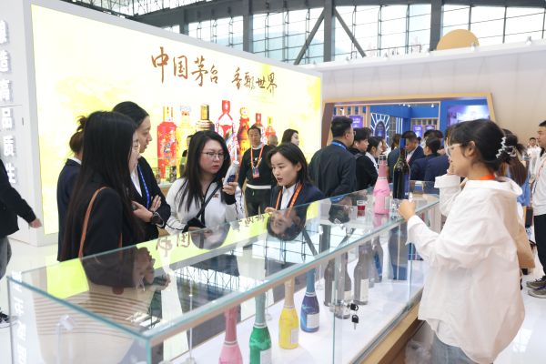 本届展览会,茅台集团旗下产品集中亮相参展。开幕式结束后,张旭到茅台展厅巡馆,与现场消费者、工作人员互动交流,并详细了解茅台布展情况。