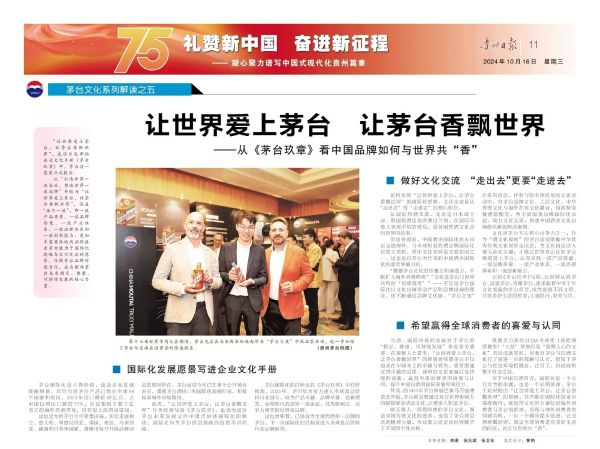 正如《茅台玖章》写的,让世界认同茅台、喜爱茅台、青睐茅台,使承载着中华千年文化底蕴的茅台芬芳,成为连接不同文明、共享美好生活的桥梁,大道同行,美美与共。