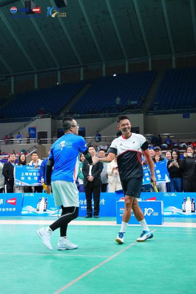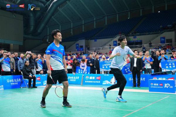 总决赛开幕式上,羽毛球双圈全满贯林丹、世界冠军鲍春来,与领导嘉宾共同开球。