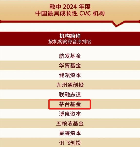 近日,融中财经正式发布了2024年度中国股权投资机构榜单,其中茅台基金荣获“2024年度中国最具成长性CVC机构”榜单。融中股权投资年度榜单是行业内各类机构以及创新企业投资、募资、融资的重要参照,这一荣誉进一步肯定了茅台基金在投资领域不断增强的行业影响力。