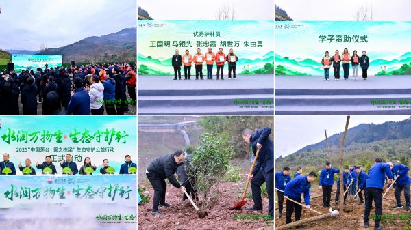 水润万物生,生态守护行。2月18日,正值雨水时节,2025“中国茅台·国之栋梁”生态守护公益行动启动仪式在贵州仁怀、云南镇雄和四川古蔺三地联动召开,以“春种希望”为2025年一季度的公益主题,开启茅台公益事业的全新篇章,并以巡河、植树等多种形式,全方位投入到保护赤水河的行动中。