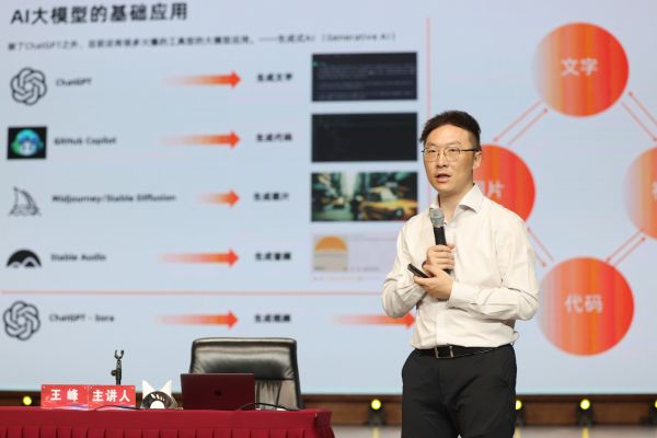 启动仪式后,华智新知人工智能科技研究院负责人、中组部干部培训基地认证讲师、阿里AI大模型指定讲师、原阿里CIO学院创始合伙人、执行院长王峰教授,作题为《DeepSeek能力加持下:AI超级管理者“效能提升”》专题讲座。讲座中,王峰围绕DeepSeek创新与AI时代机遇、个人&组织管理效能提升、大模型的行业化落地进行专业辅导,系统介绍AI大模型的基础应用及未来发展路径和方向,现场演示如何利用AI工具构建私人AI助理、AI员工、企业级智能体,并重点解析AI在企业应用中的七个层次。