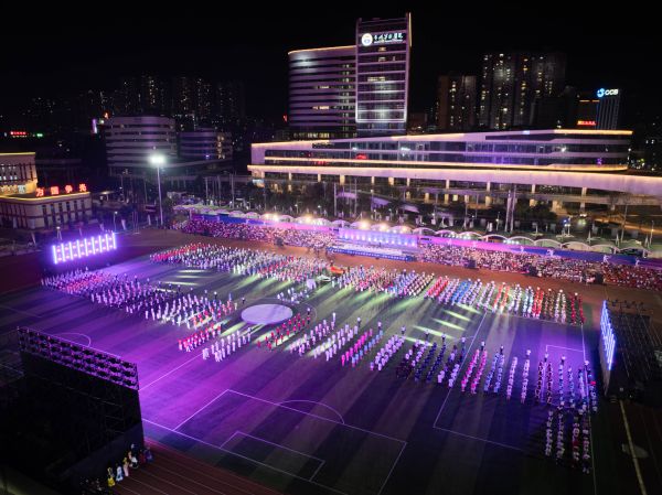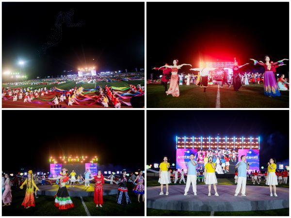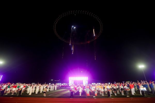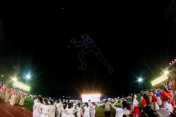 文艺演出的同时,无人机表演压轴登场。夜空中依次勾勒“顺天敬人 明理厚德”的企业价值观、“中国茅台 香飘世界”的企业愿景,以及自行车、足球等运动图腾,最终汇聚成璀璨星河,与场馆灯光、天边皓月相映成辉,为开幕式画上了圆满的句号。