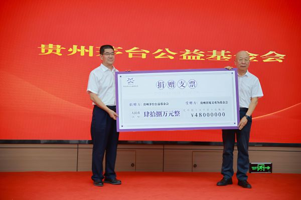 6月20日,“中国茅台·国之栋梁——善行万家公益行动”之见义勇为公益项目捐赠仪式在贵阳举行,贵州茅台公益基金会向贵州省见义勇为基金会捐赠48万元。省慈善联合会会长陈鸣明出席捐赠仪式并讲话。省委政法委副书记赵福全向茅台公益基金会颁发捐赠证书和宣传品,茅台公益基金会理事长卓玛才让、省见义勇为基金会理事长何冀致辞。
