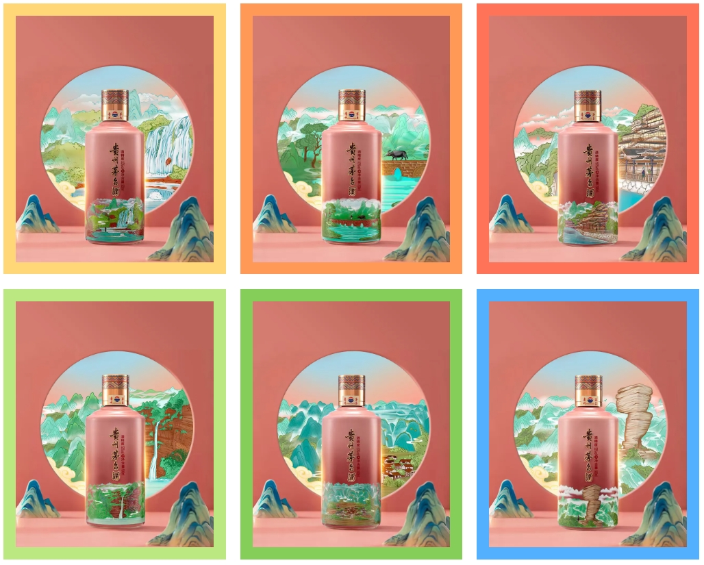 贵州茅台酒“黄小西吃晚饭”文化系列产品,以黄果树瀑布的磅礴、小七孔的灵秀、西江苗寨的古韵、赤水丹霞的壮美、万峰林的奇绝、梵净山的清幽六大黔地胜景为灵感,将喀斯特奇观与多彩的民族风情巧妙融入产品设计之中,以细腻生动的插画艺术,将贵州山水人文与茅台酒传统酿造技艺深度交融,展现多彩贵州文化的极致魅力,让每一瓶酒都成为承载贵州山水灵韵与深厚底蕴的艺术臻品。产品规格53%vol,包含500ml和100ml,面向来黔游客、收藏爱好者及追求高品质生活的消费者,满足其品饮、旅途纪念、馈赠、收藏等多元需求,旨在推动贵州“酒旅融合”,拓展茅台消费场景,传播酒文化。