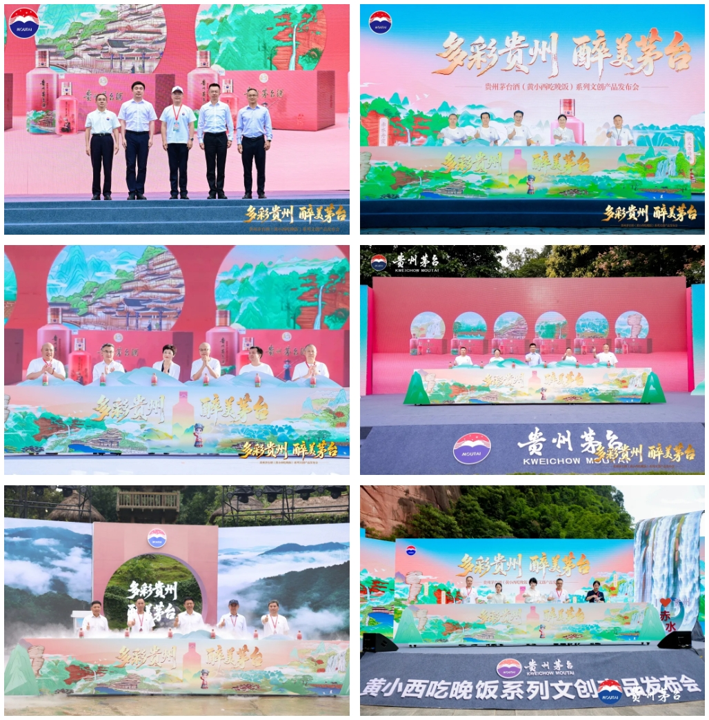 走遍大地神州,醉美多彩贵州。此次贵州茅台酒(黄小西吃晚饭)系列文创产品发布,是茅台集团落实省委、省政府决策部署,积极践行“卖酒向卖生活方式转变”,深度推进酒旅链接融合,以1个主会场(西江千户苗寨)+5个分会场(安顺黄果树瀑布、荔波小七孔、赤水丹霞、兴义万峰林、铜仁梵净山)形式,直播连线同步进行,通过酒旅融合双向赋能,将贵州千姿百态的山水景色,古朴浓郁的民族风情和丰富厚重的文化资源完美呈现,更生动展现出多彩贵州的文化魅力和新生活方式。