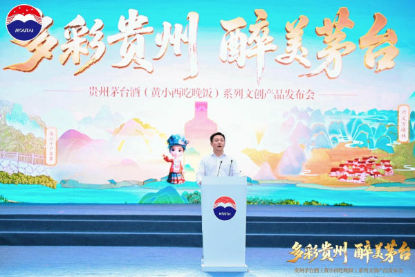 贵州省黔东南州雷山县委副书记、县政府副县长、代理县长黎琨在致辞中表示,贵州茅台酒是世界酱香型白酒的典型代表,其酿制技艺是国家级非物质文化遗产,以独有的工艺、卓越的品质,成为香飘世界的“中国名片”。茅台以酒为载体,用“六地六瓶六种文化气息”为核心内容,将“黄小西吃晚饭”六大特色旅游景区与茅台美酒的醇香甘美诗意交融,这不仅是顶尖酿造工艺与极致品质的浓情碰撞,更是对贵州多元民族文化与壮美山河的一次深情礼赞和艺术升华。当“黄小西吃晚饭”的烟火温情遇见“贵州茅台”的醇厚匠心,两者共同书写的不仅是一款文创产品,更是贵州文旅产业与优势特色产业深度融合的一次生动实践,是向世界描述醉美多彩贵州的重要载体。